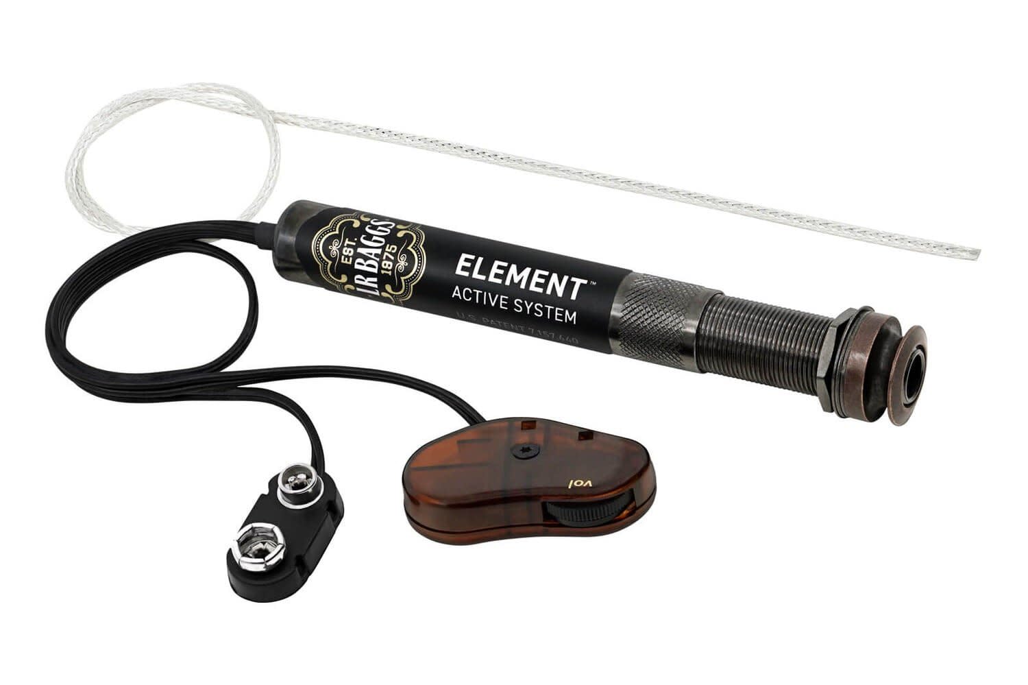 If you're looking for a premium under-saddle pickup to add to your acoustic guitar, then check out the Element Active System by LR Baggs. The under-saddle transducer element itself has a minimalist design and broad surface contact area that lets it get the most out of your instrument. The Element Active System also gives you an active, Class A endpin-mounted preamp with plug-in-and-play convenience, so you never have to fumble around for the on/off switch — just plug in and it turns on. The removable volume control mounts just inside the soundhole for easy access. And installing the entire Element Active System in most acoustic guitars is easy and doesn't require permanently altering your instrument. LR Baggs Element Active System Under-saddle Pickup and Preamplifier Features at a Glance: One size fits most acoustic guitar string spacing and saddle widths for even string balance Plug-in-and-play convenience turns on when you plug
